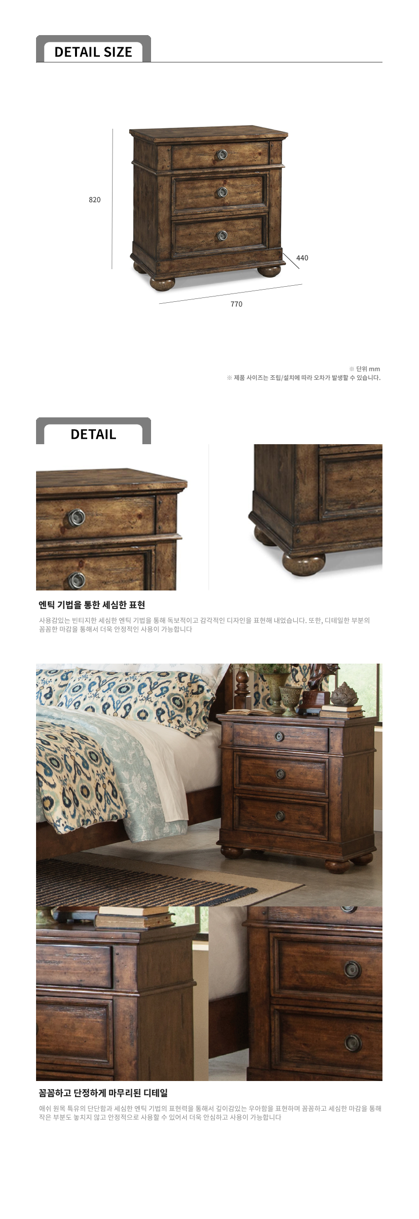 오렌지브라운 침대사이드테이블 거실협탁 오로라 침실 협탁
