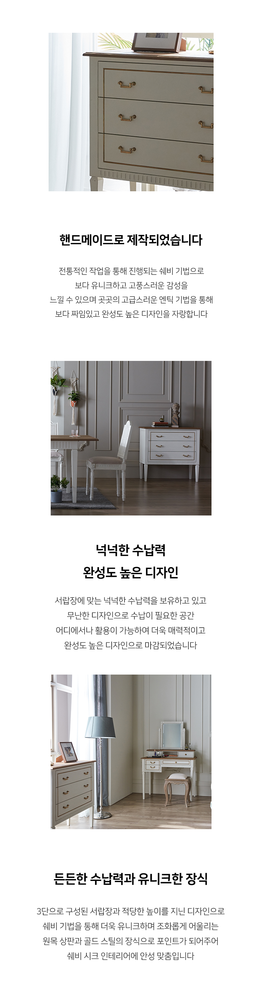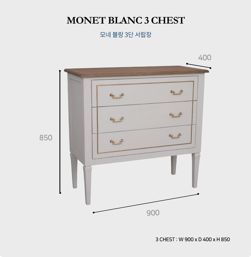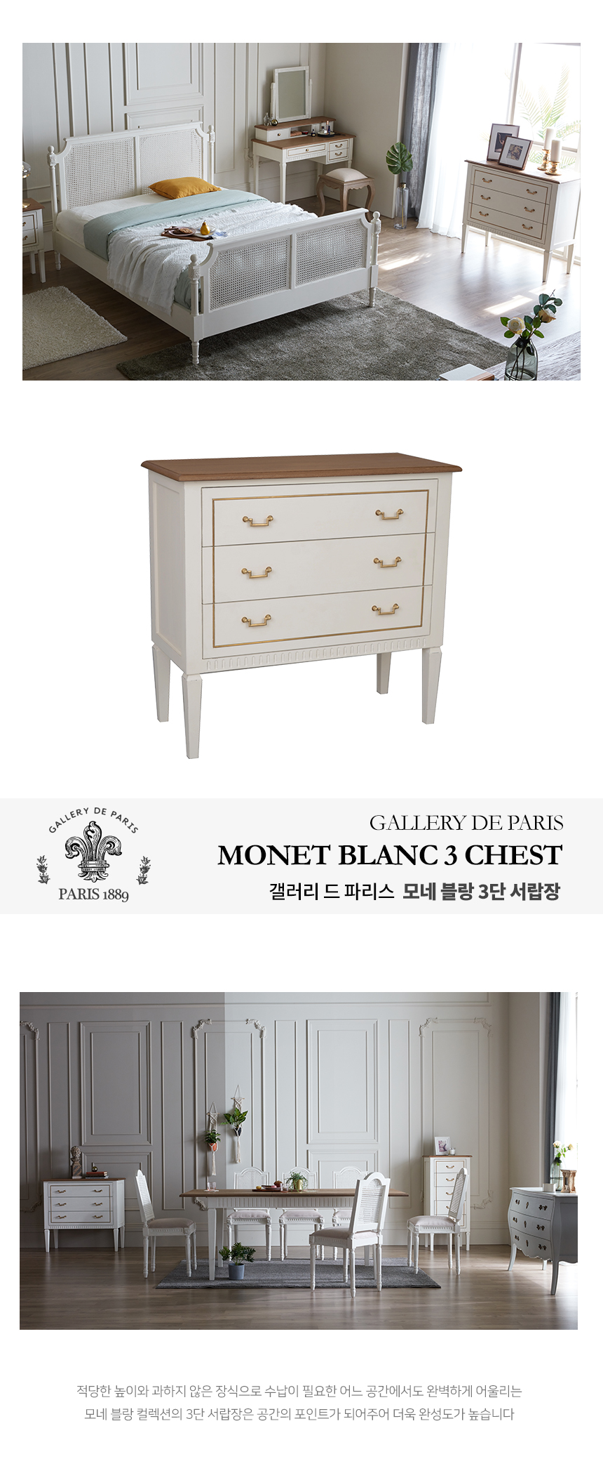 쉐비블랑 화이트 낮은서랍장 모네 블랑 3단 서랍장
