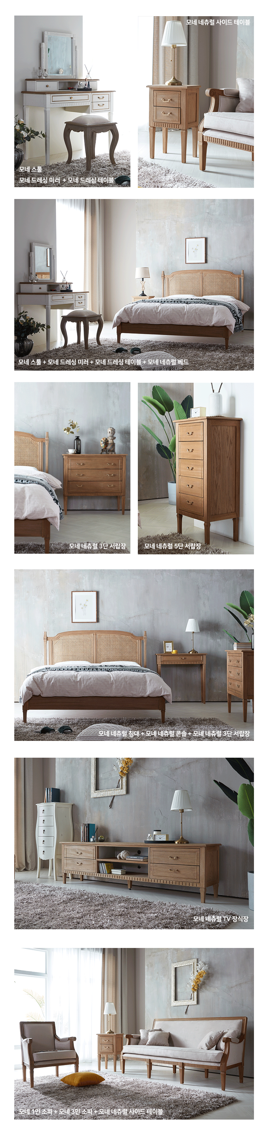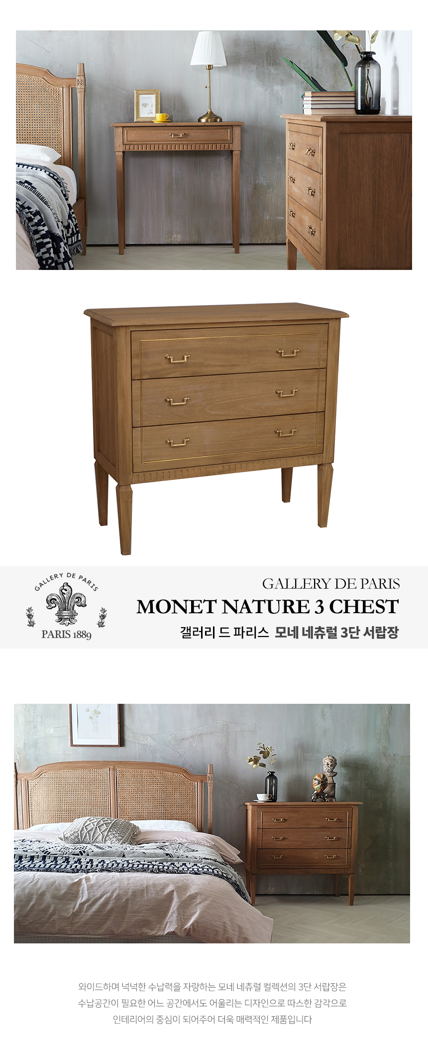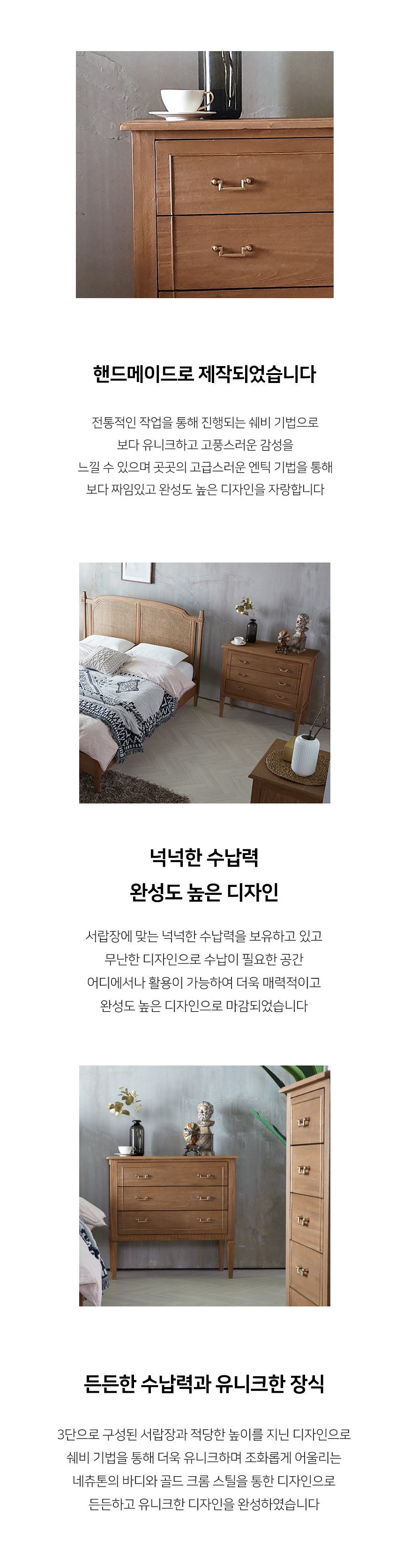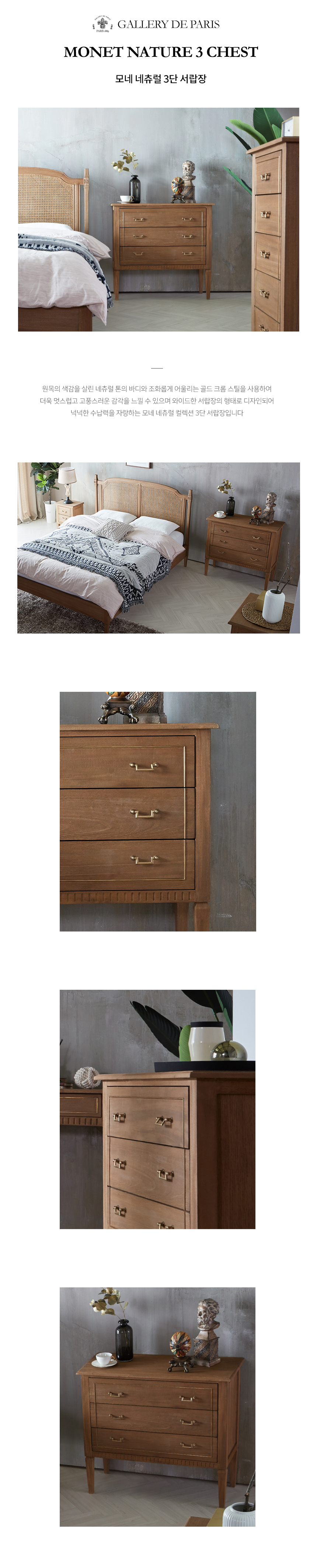 빈티지네츄럴 옷 엔틱수납장 모네 네츄럴 3단 서랍장