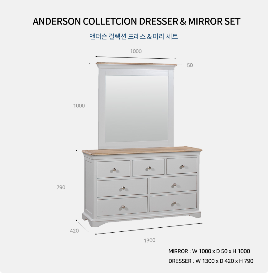 파스텔그레이 와이드 옷서랍장 앤더슨 드레서 세트