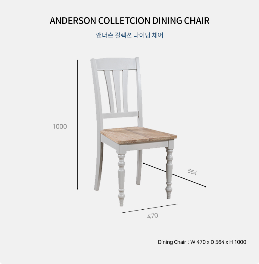파스텔그레이 엔틱 원목식탁의자 앤더슨 사이드체어