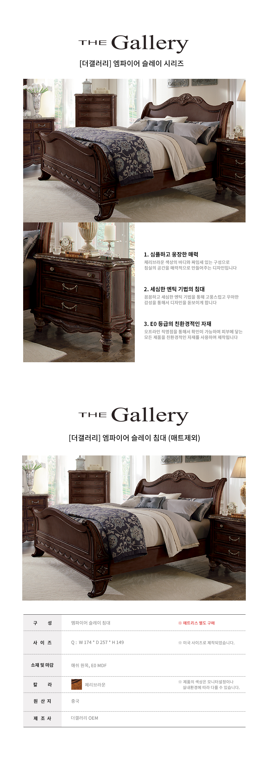더갤러리 가구 엔틱 엠파이어 브라운 Q 침대 프레임