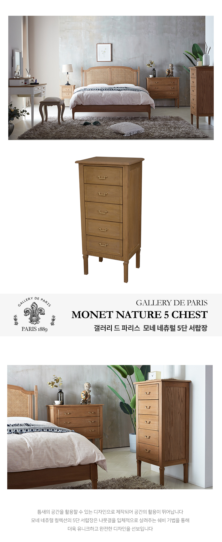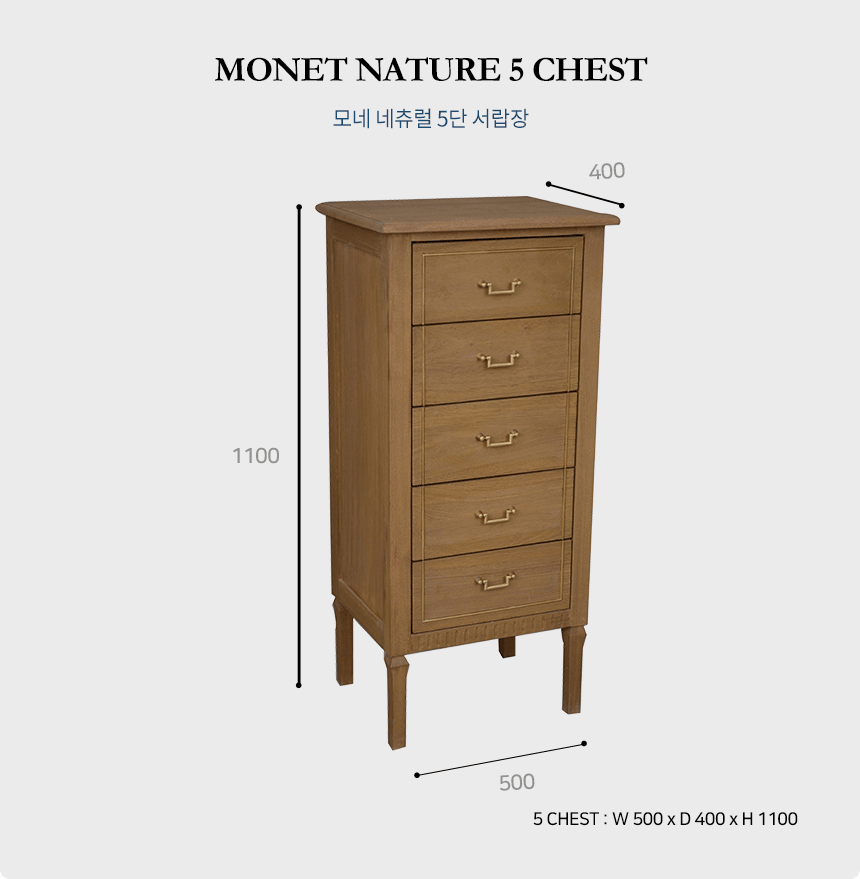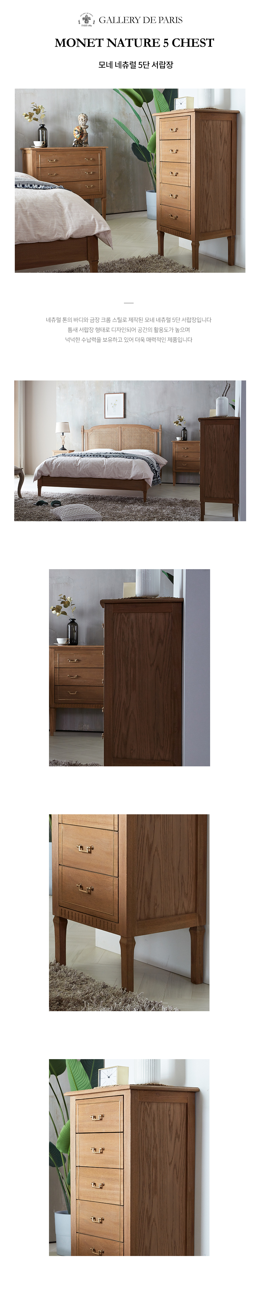 네츄럴 원목 콘솔 엔틱 가구 모네 네츄럴 5단 서랍장