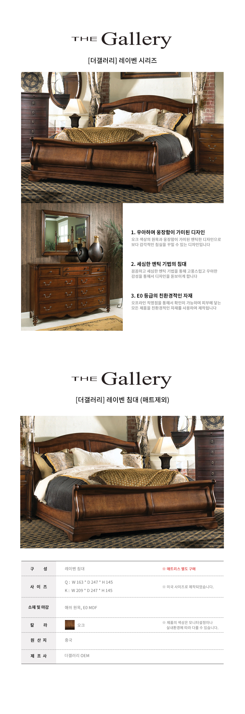 오크브라운 호텔 퀸침대사이즈 레이벤 침대프레임